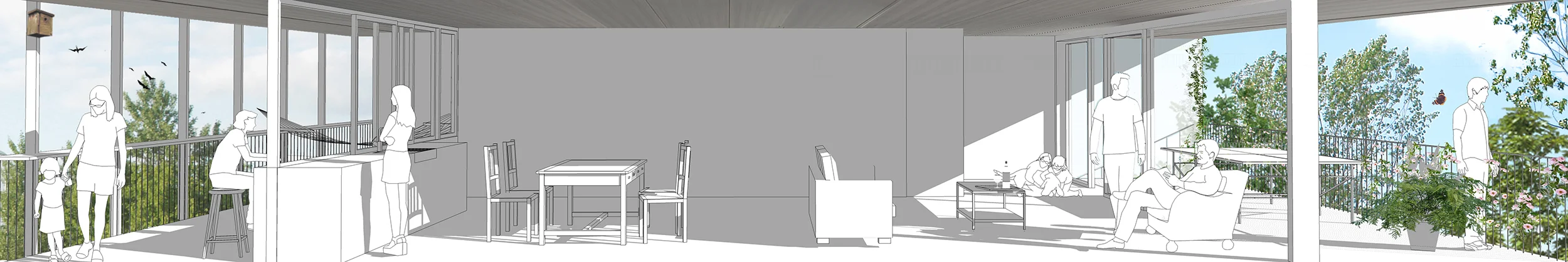 La rationalité constructive, le pragmatisme économique et la place laissée aux usagers nous permettent de donne la priorité à l’usage et à la générosité. Elle permet d’offrir à chaque logement deux orientations grâce à des logements traversants qui comprennent deux espaces extérieurs et deux accès. Ces espaces extérieurs largement dimensionnés transforment l’appartement en maison. Ils permettent également de rencontrer facilement ses voisins. Les appartements sont largement vitrés et offrent tous une vue sur le parc paysager. Les appartements sont de type locatif : Prêt locatif à usage social (PLUS) et Prêt locatif aidé d’intégration (PLAI). Livraison 2020.